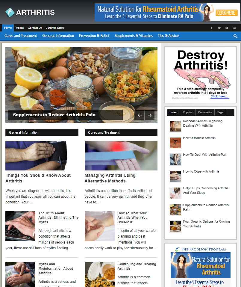 This ready-made arthritis website is a powerful marketing kit designed to help you earn easy affiliate cash online. This is great for the lucrative health remedies industry.