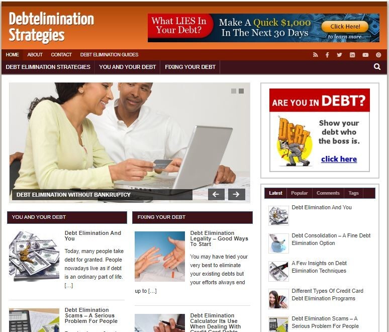 Debt Elimination Strategies Ready Made Blog Turnkey Niche Website Business